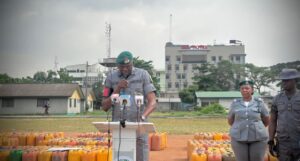 Speaking during press briefing held on Tuesday, March 31st in Lagos, the National Coordinator of Operation Whirlwind, Deputy Comptroller Abubakar Lucky Aliyu, disclosed that 595 jerry-cans of 25 litres each, with a total Duty Paid Value (DPV) of ₦14,875,000, were recovered. He explained that the petroleum products were being moved illegally across borders in violation of national petroleum regulations.